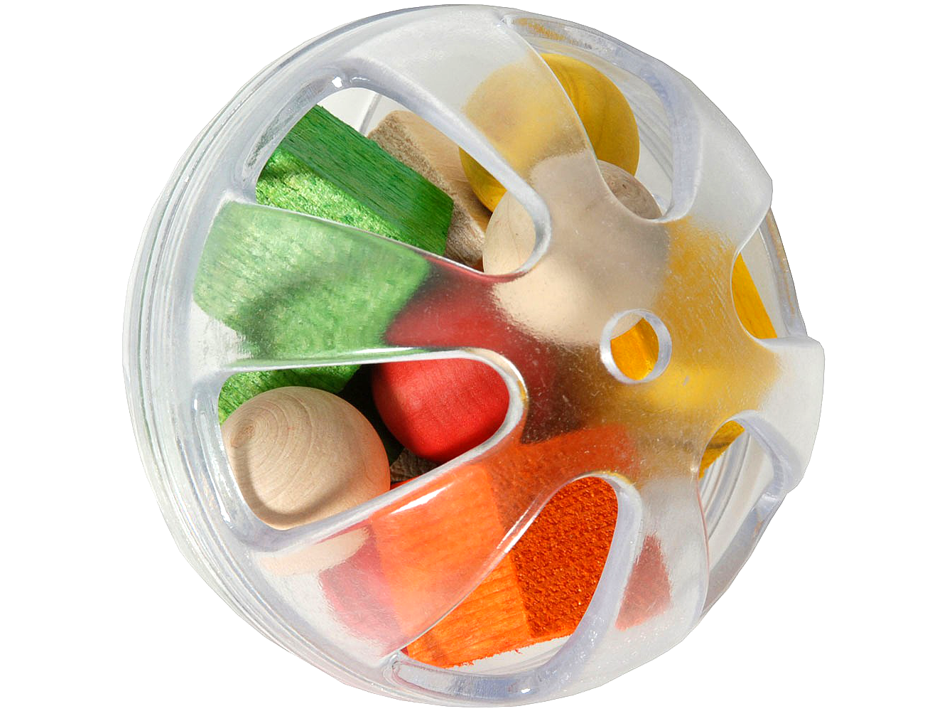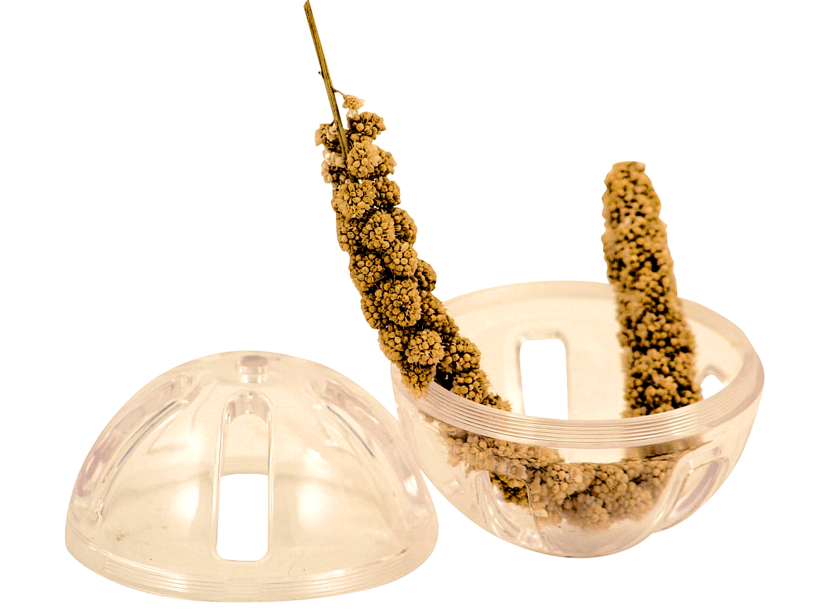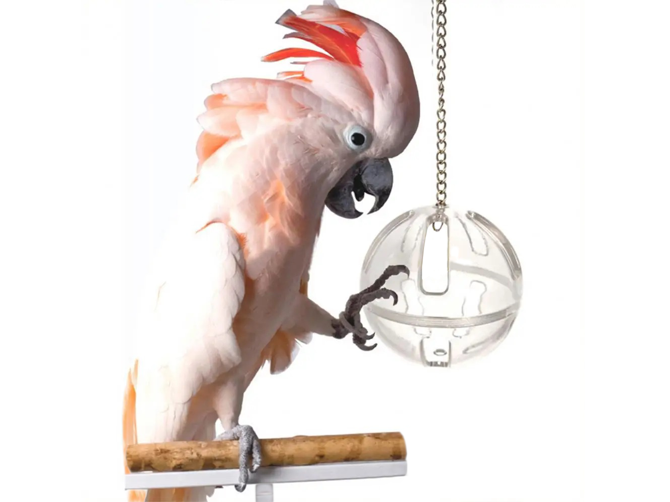 Trwały przezroczysty poliwęglan jest gotowy stawić czoła każdemu niszczycielskiemu dziobowi, a jednocześnie pozwala twojemu pupilowi obserwować smakołyk lub przedmiot, który zamkniesz w środku. Jest też tak lekki, że może służyć jako tzw. zabawka „do łapki” nawet średniej wielkości papugom, jak np. barwinki czy senegalki, które są w stanie go unieść w łapie. Może służyć do zabawy w klatce, jak i poza nią, np. do toczenia po gładkiej powierzchni. Aby wydobyć zamknięte w niej smakołyki lub przedmioty papuga będzie nią potrząsać lub toczyć. Jeśli twoja papuga jest fanką różnych dźwięków, w piłce można też zamknąć plastikowe koraliki lub dzwoneczek. Można też zawiesić kulę na łańcuszku (sprzedawana jest bez łańcuszka).