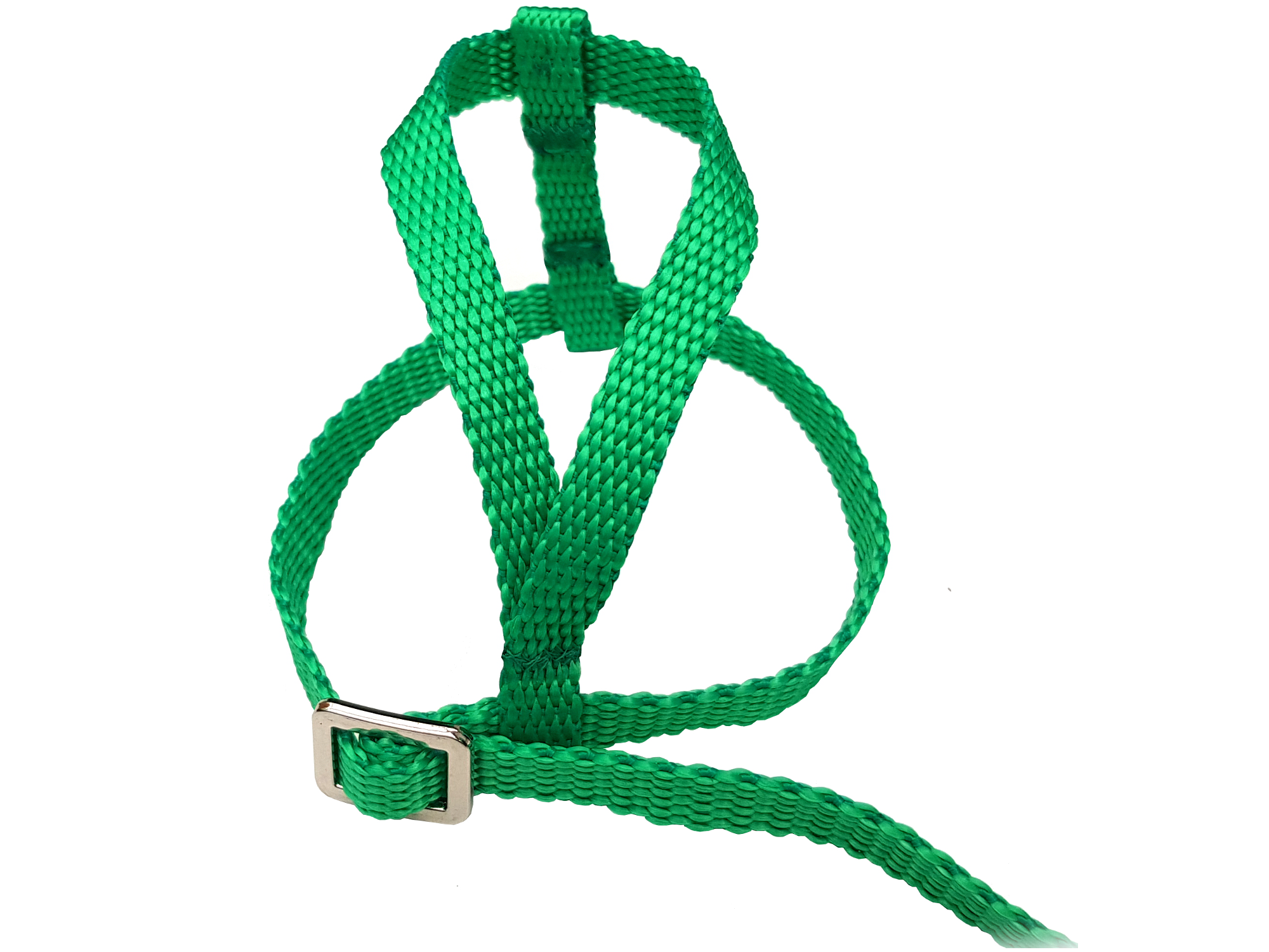 Nasze szelki mają podobną konstrukcję jak szelki Aviator. Przesuwna wokół talii sprzączka gwarantuje, że ptak, który zerwie się do lotu i zostanie zatrzymany na amortyzującej smyczy, nie zostanie nagle odwrócony o 180° (przeczytaj zakładkę Bezpieczeństwo). Natomiast tył został zaprojektowany w kształcie litery T, aby paski szelek nie zaciskały się na szyi ptaka, lecz rozchylały przednie paski wokół wola i nie uciskały go.