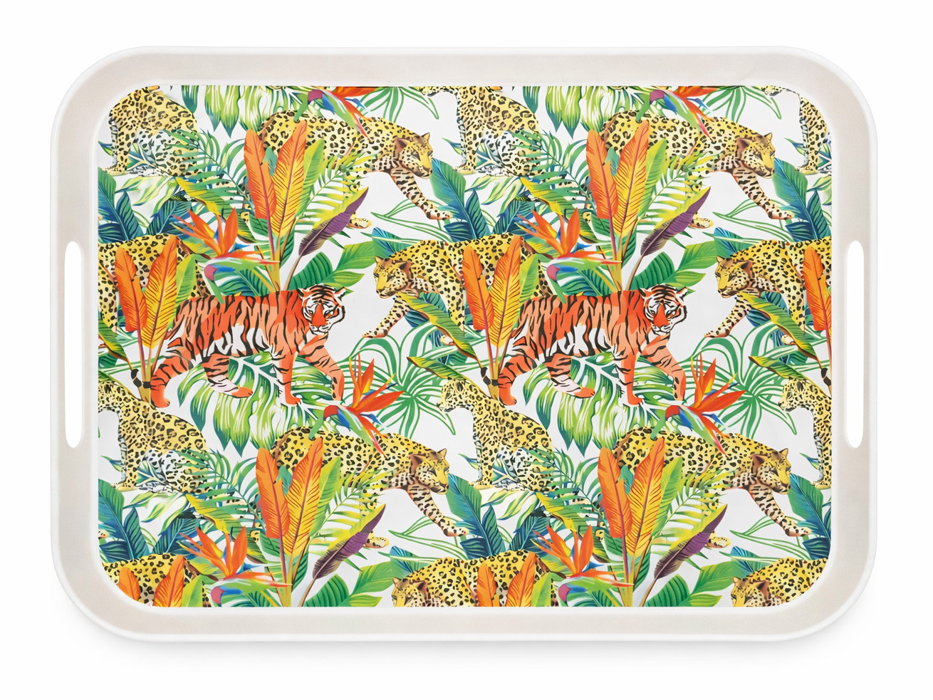 Masywna, ciężka taca (0,7 kg). Długość 41 cm, szerokość 31 cm, wysokość ok. 5 cm.