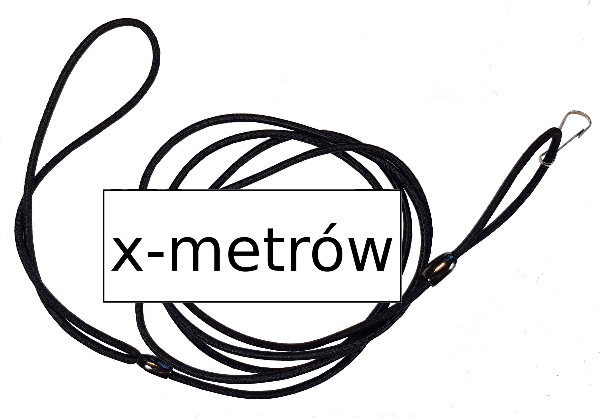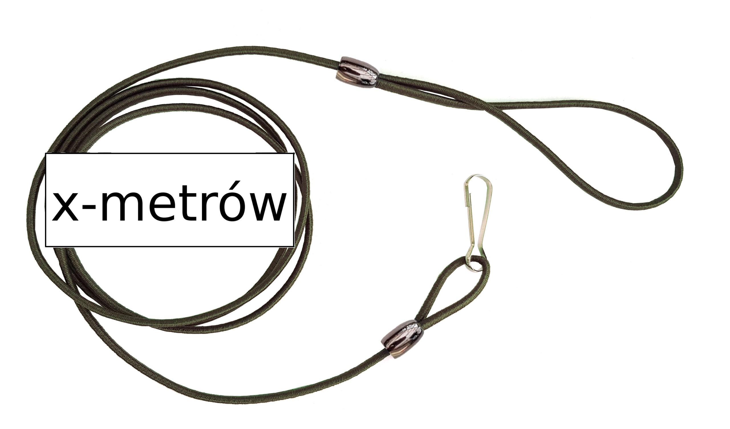 Smycz wykonana jest z rozciągliwej linki amortyzującej typu Bungee Shock Cord z od kilku do kilkunastu lateksowymi rdzeniami w poliestrowym oplocie. Pojedyncza elastyczna linka o długości ok. 1,5m. Metalowe końcówki w kolorze czarnym lub srebrnym różnych odcieni i kształtów, wysyłane losowo.
