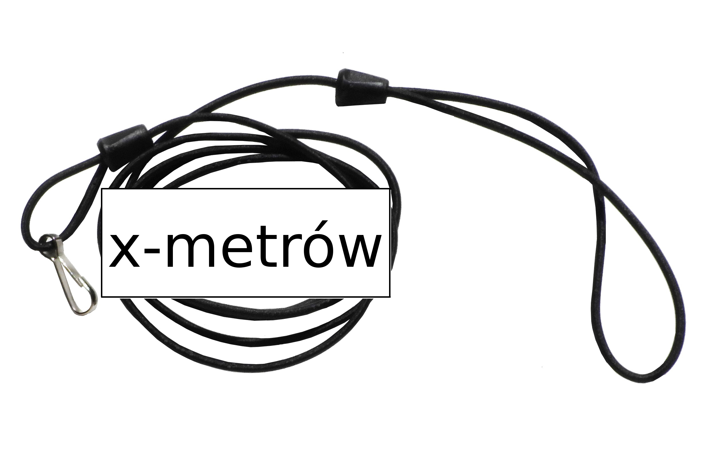 Smycz wykonana jest z rozciągliwej linki amortyzującej typu Bungee Shock Cord z od kilku do kilkunastu lateksowymi rdzeniami w poliestrowym oplocie. Pojedyncza elastyczna linka o długości ok. 1,5m. Czarne końcówki z tworzywa sztucznego.