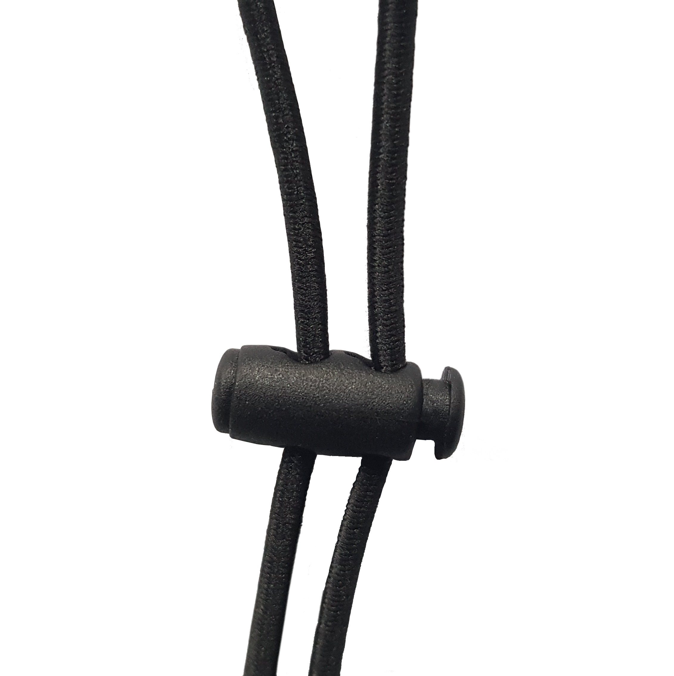 Pojedyncza elastyczna linka o standardowej długości ok. 1m. Stoper z tworzywa sztucznego dwuotworowy. Czarne końcówki z tworzywa sztucznego.